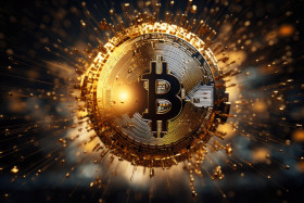 This powerful image captures the essence of Bitcoin within a circuit-like explosion, reflecting the currency's significant influence on the tech and financial world.
