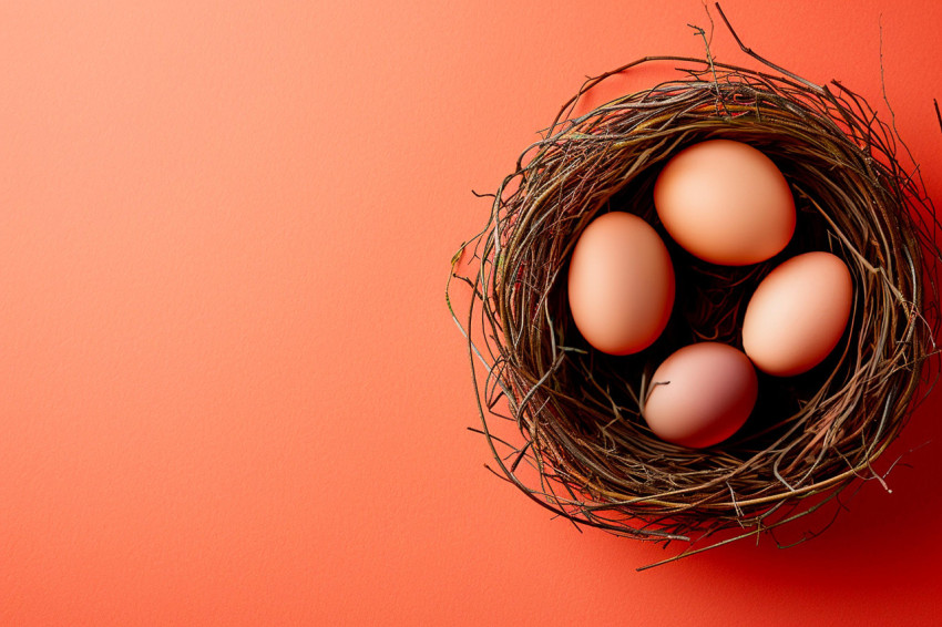 Serene Composition of Eggs Nestled in a Natural Twig Nest