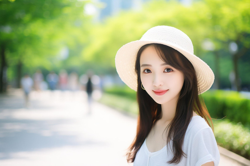 Summer Portrait of a Smiling Woman in a Hat