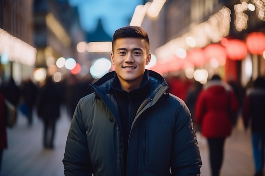 Warm Portrait in a Bustling Street Setting