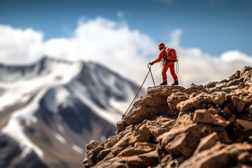 mountaineering adventure silhouette outdoor sports climber determination solitude trekking sunset nature's challenges human endurance high-altitude rugged terrain dramatic contrast snow texture outdoor equipment travel inspiration adventure travel climbing action reaching new heights summit aspirations persistence exploration peak conquest adventure spirit natural backlight wilderness effort goal achievement inspirational escapism travel pursuits scenic beauty adventure storytelling outdoor challenge environmental interaction goal setting motivationalMore AI Images in Sports & Leisure