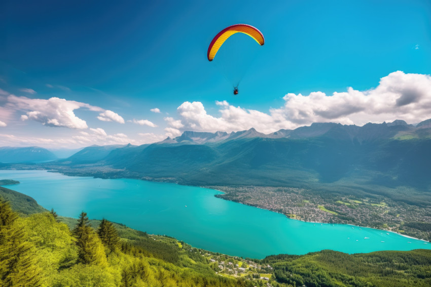 Breathtaking Paragliding Adventure above Mountain Lake