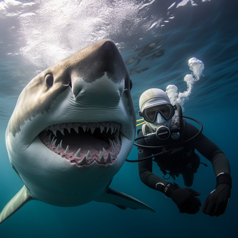 Thrilling Encounter Between Diver and Great White Shark