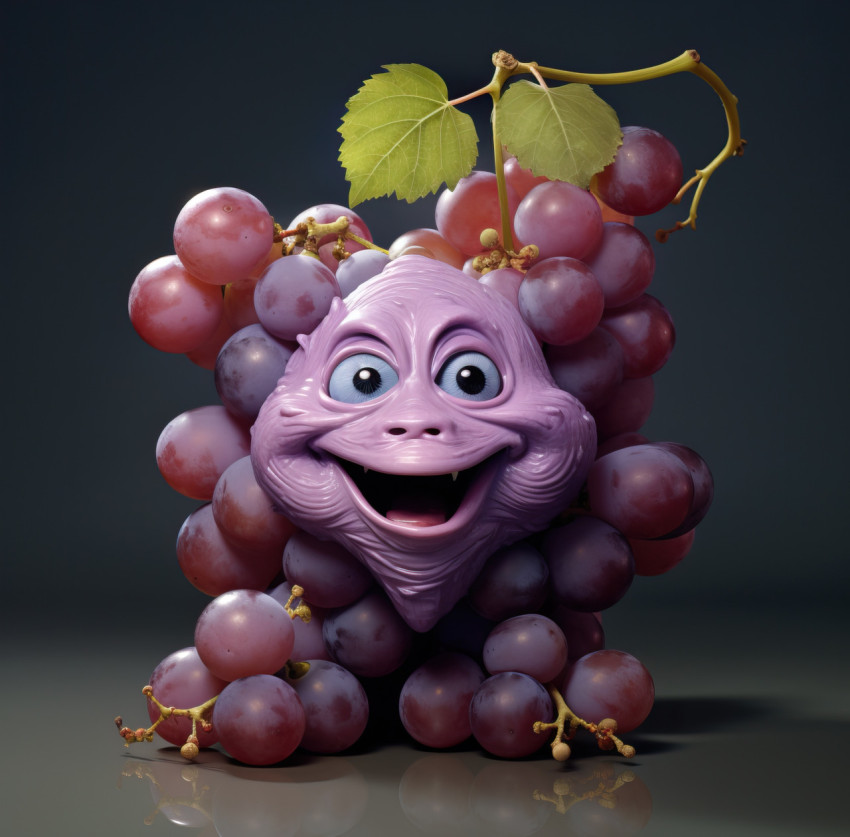 Whimsical Personified Grapes with a Joyful Expression