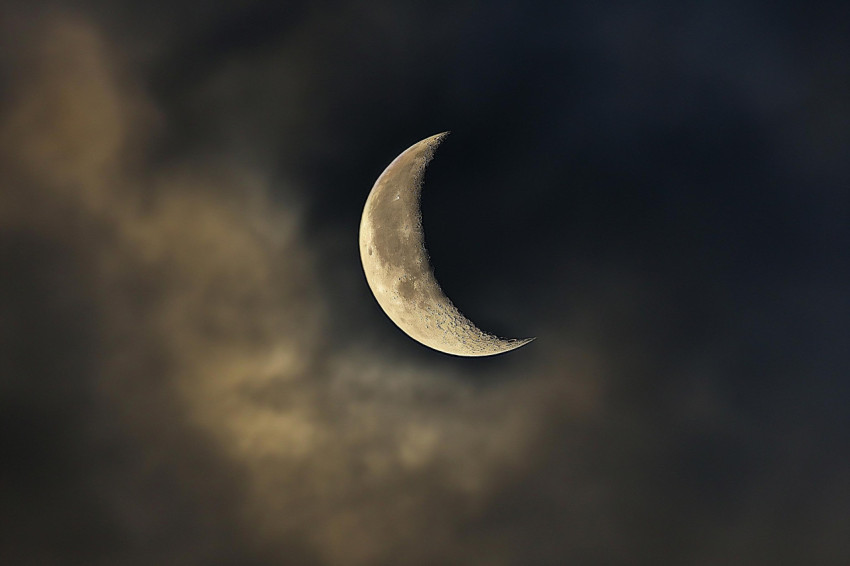 Stunning Image of a Crescent Moon Above the Clouds
