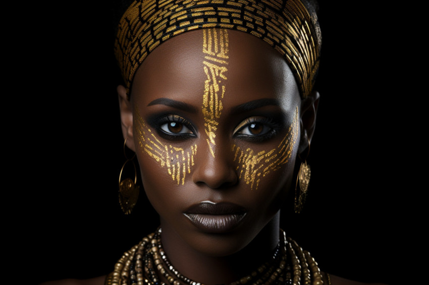 Stunning Portrait of a Woman Adorned in Traditional African-Inspired Makeup