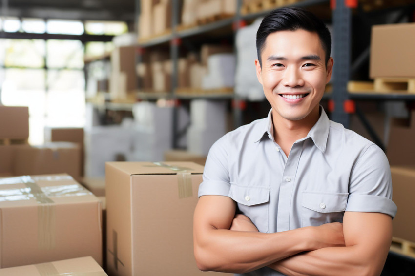 Confident Entrepreneur in Warehouse