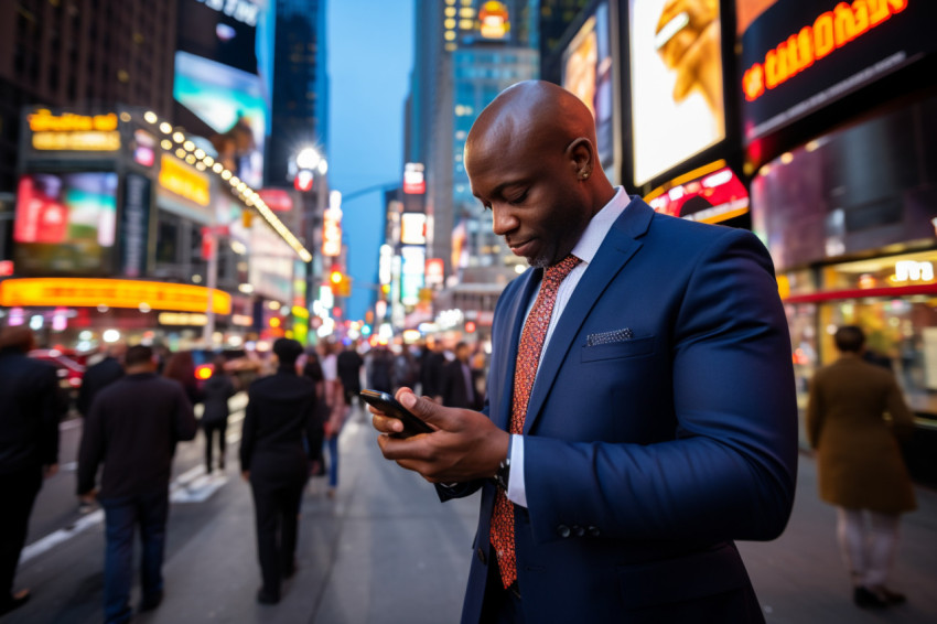 Captivating Urban Evening Scene with a Professional Using a Smartphone