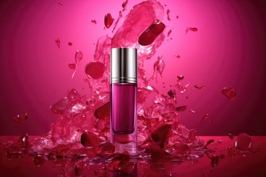 Stylish Portrait of a Woman with Classic Makeup Against a Red Background