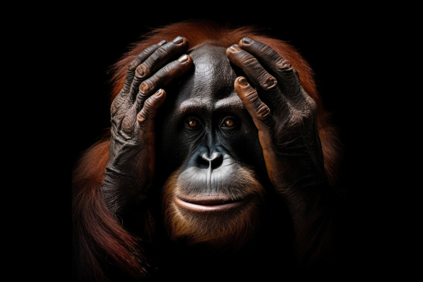 Intimate Portrait of an Orangutan in Thoughtful Pose