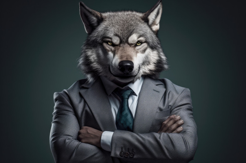 Intimidating Persona of an Anthropomorphic Wolf in Business Attire