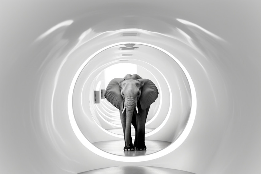 Surreal Image of an Elephant Inside a Futuristic Tunnel