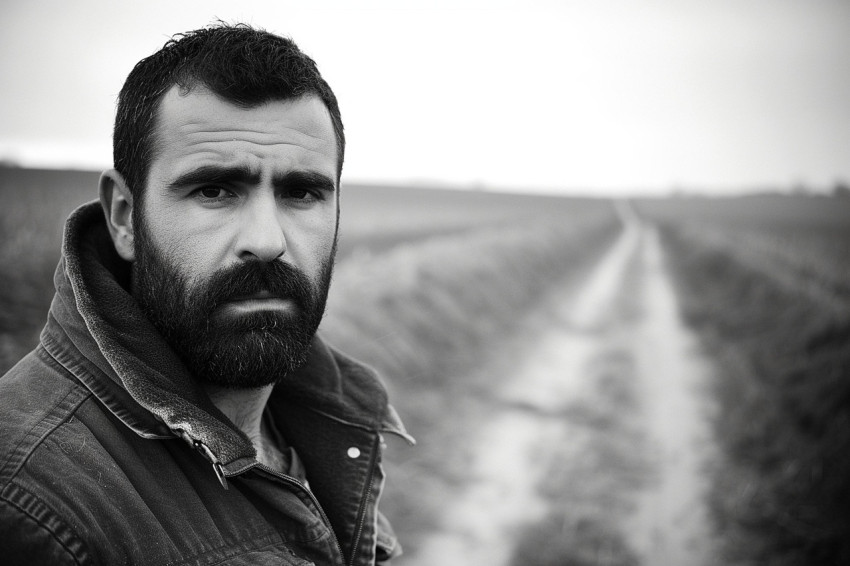 Intense Portrait of a Bearded Man in Monochrome
