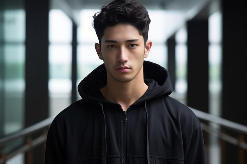 Intense Portrait of a Young Man in a Hoodie