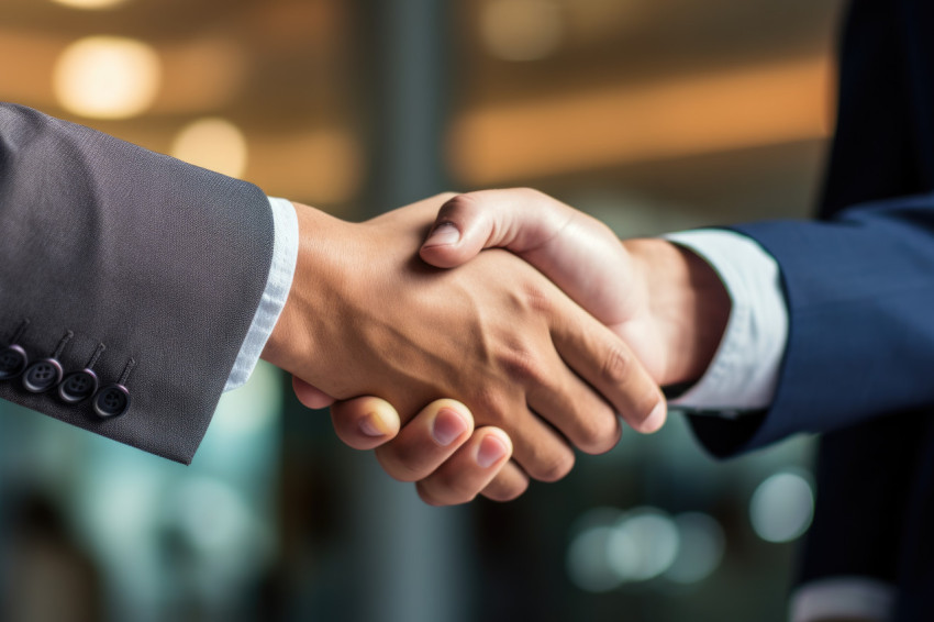 Professional Handshake Captured in Warm Office Ambience