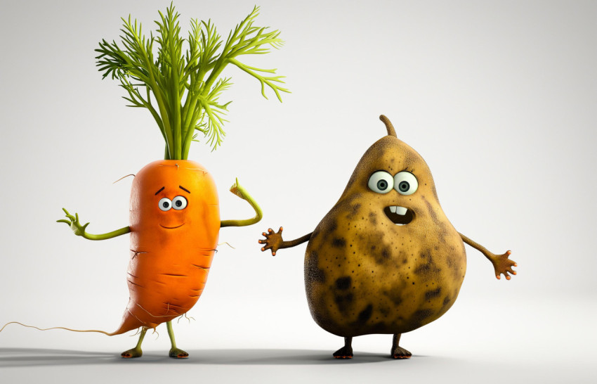 Animated Carrot and Potato Characters Showing Expressions of Joy