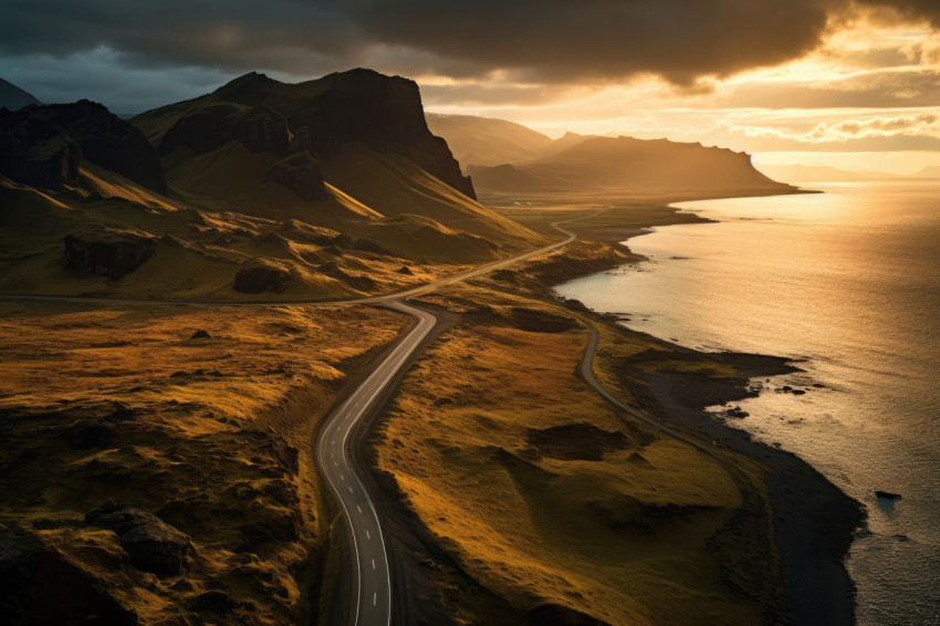 Stunning Capture of a Coastal Road at Sunset