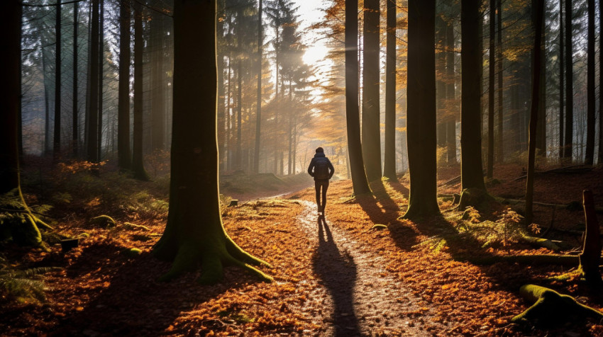 Solitary Trek Through a Radiant Forest