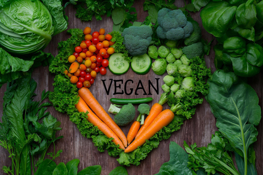 Creative Display of Fresh Vegetables Spelling 'VEGAN'