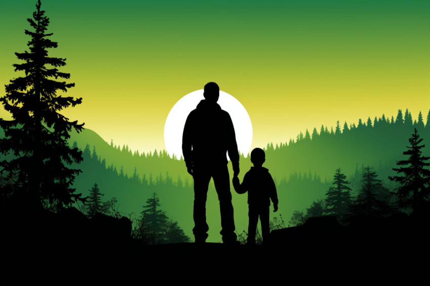 Silhouetted Figures Against a Sunset in Nature