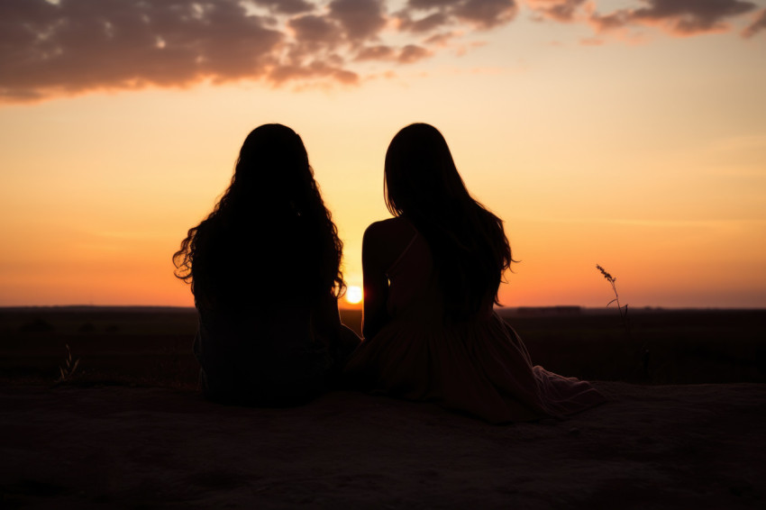 Serene Backdrop of a Couple Enjoying a Sunset by the Sea