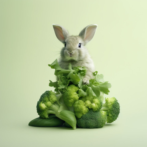 Adorable Bunny Perched Atop Fresh Greens