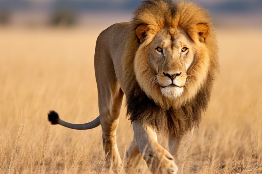 Majestic Lion Roaming in the African Savanna