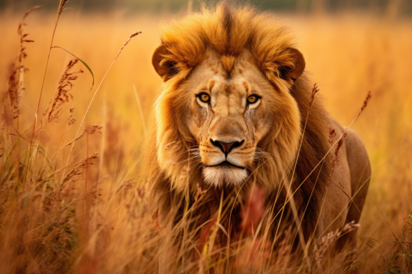 Majestic Portrait of an African Lion in Golden Grass