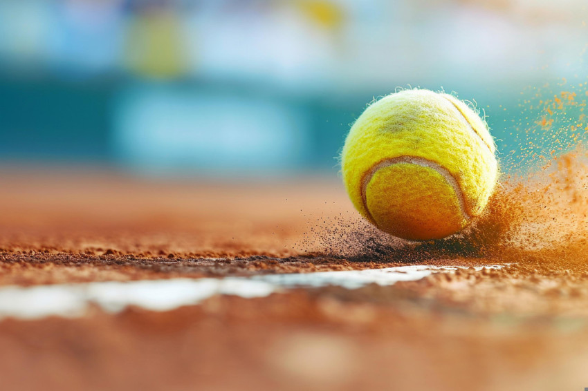 Dynamic Freeze-Frame of a Tennis Ball on Clay Court