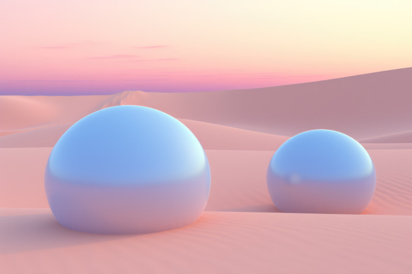 Surreal Landscape with Pastel Hued Spheres