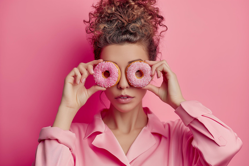 Playful Portrait with Pink Donuts