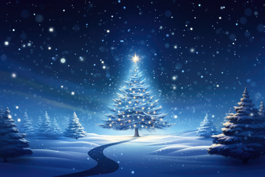 Enchanted Winter Night Scene with a Lone Christmas Tree