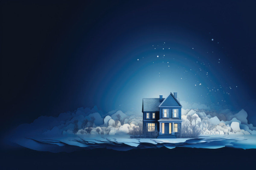 Enchanting Illustration of a Secluded House in a Winter Night Setting
