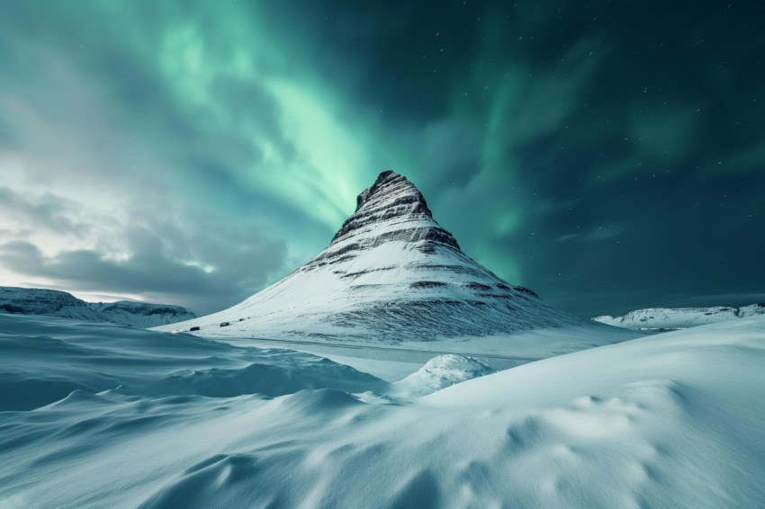 Majestic Northern Lights Over Snowy Mountain